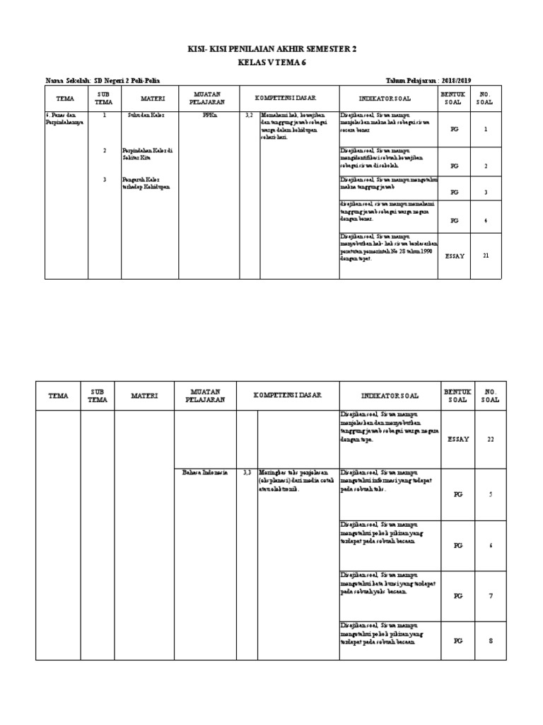 Kisi-kisi soal PAS adalah sebuah kerangka yang memberikan gambaran mengenai cakupan materi, tingkat kesulitan, dan jenis-jenis soal yang akan diujikan. Meskipun kisi-kisi spesifik dapat bervariasi antar sekolah atau guru, namun prinsip dasarnya akan selalu merujuk pada kompetensi inti yang ingin dicapai dalam tema tersebut. Berikut adalah prediksi kisi-kisi soal PAS Kelas 3 Tema 4 yang disusun berdasarkan analisis materi dan pengalaman umum: