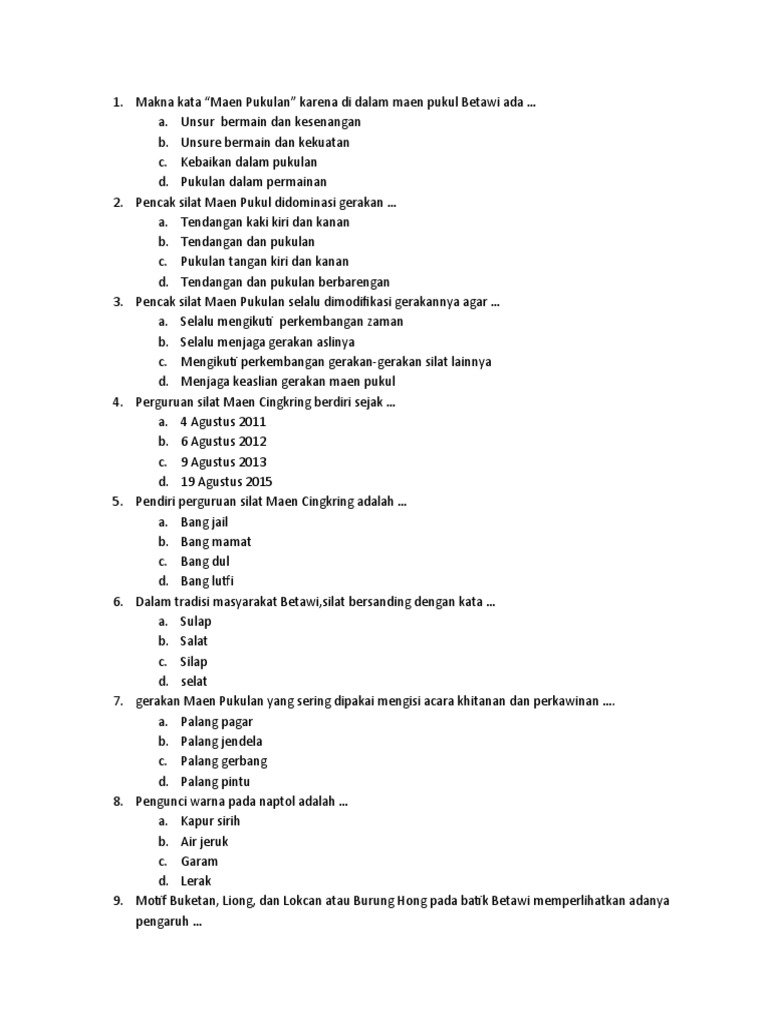 - Indikator: Siswa mampu mengenal kesenian Betawi.